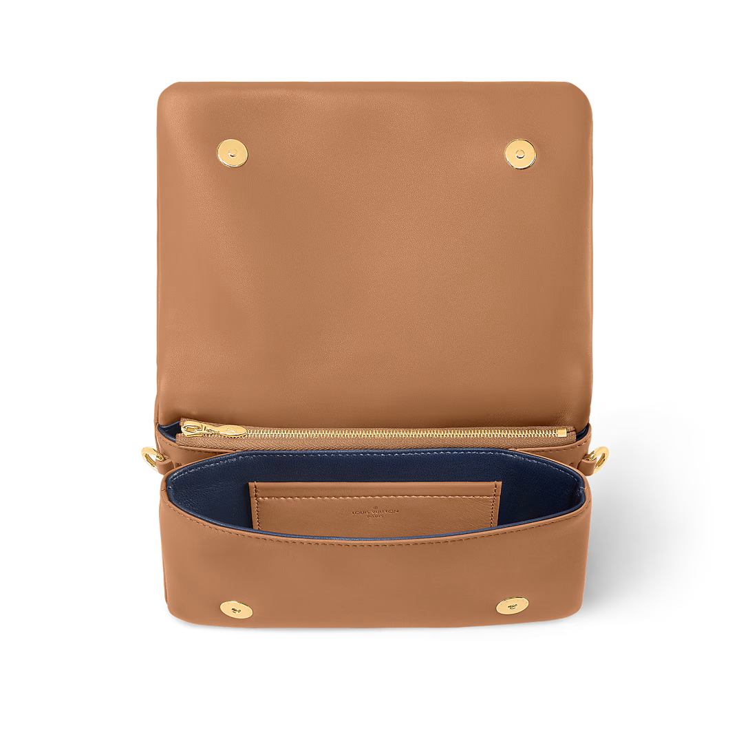 The Pochette Coussin is crafted from soft lambskin, which is embossed with the Monogram pattern to create a puffy, cushiony effect. This is further enhanced by the construction of the pouch, which gives it a supple, body-friendly shape. The removable chain, decorated with a Louis Vuitton charm, offers different carry options: clutch, shoulder or belt.
