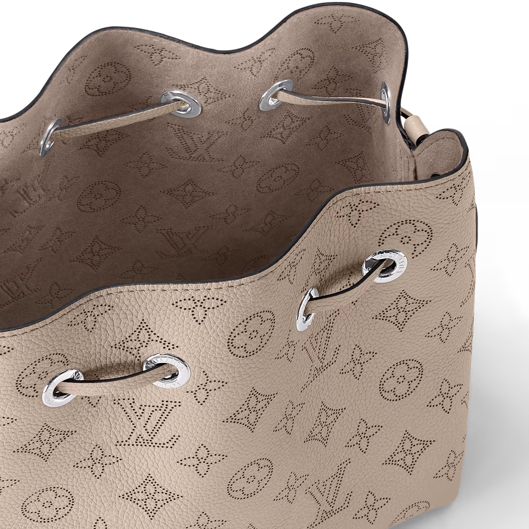 Louis Vuitton unveils the Bella bucket bag in Mahina calf leather with its perforated Monogram pattern. The bag’s small size and the attached round coin purse, featuring a miniature version of the perforated Monogram motif on one side, make it modern, desirable and trendy. The sophisticated leather and metal mixed handle associated with a removable leather strap bring versatility.