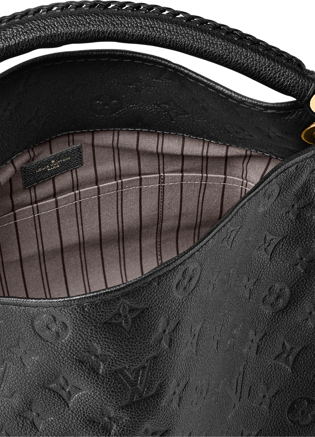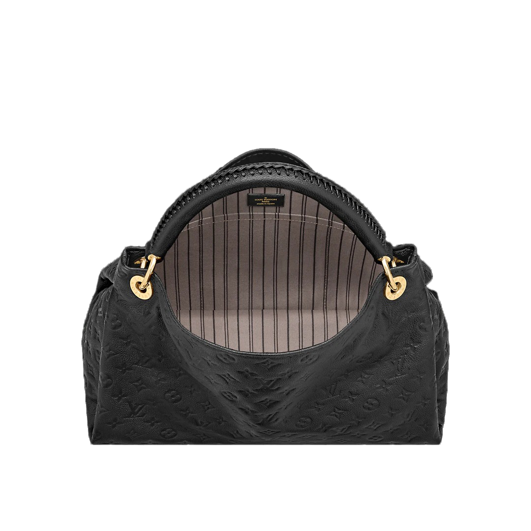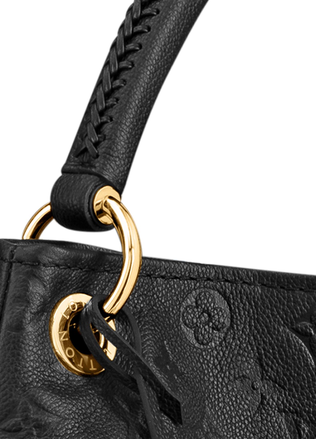 The Artsy MM handbag delights with its refined craftsmanship and functional features. Fashioned from supple Monogram Empreinte embossed leather, this quietly luxurious hobo features a handmade, cross-stitched handle that slips easily over the shoulder. Beautifully detailed with gleaming golden hardware (note the engraved eyelets, D-ring and key holder), it opens to reveal a roomy, well-organized interior.