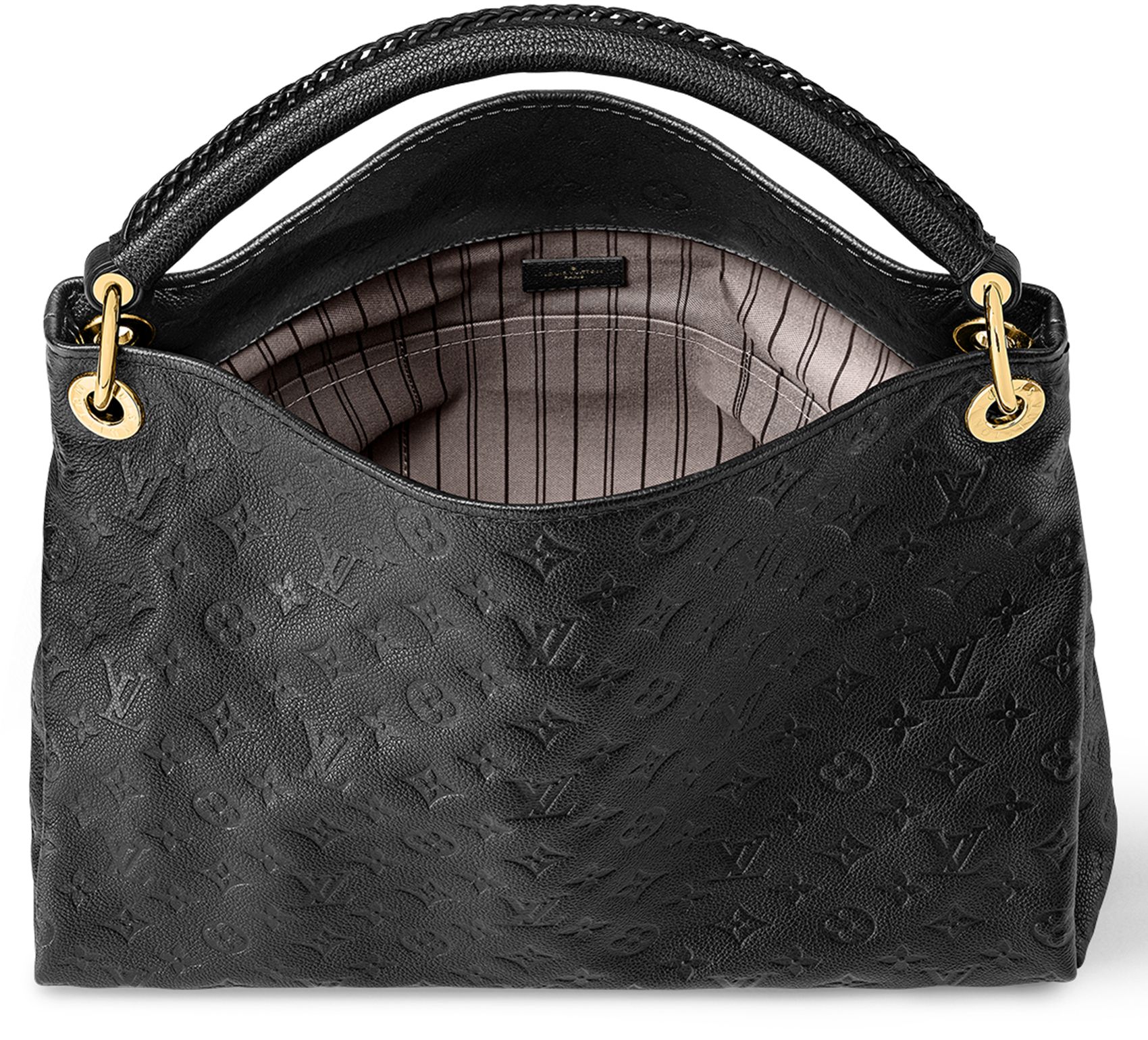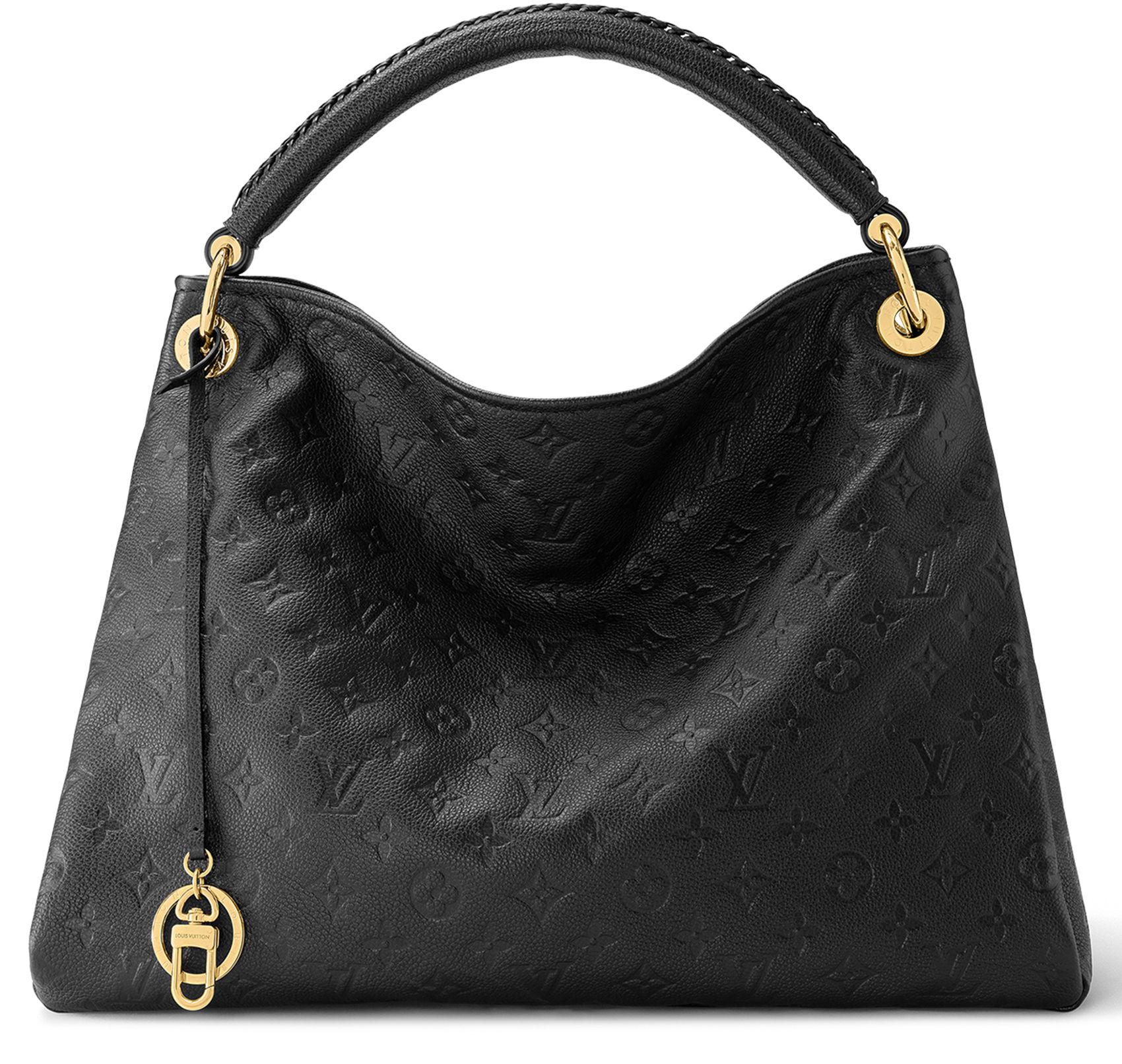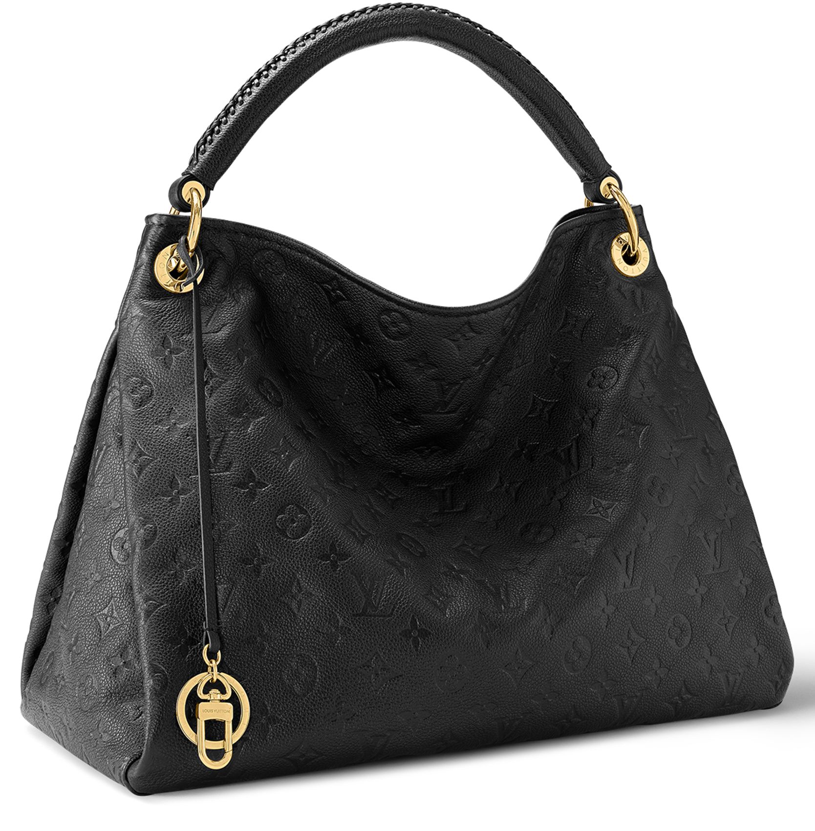 The Artsy MM handbag delights with its refined craftsmanship and functional features. Fashioned from supple Monogram Empreinte embossed leather, this quietly luxurious hobo features a handmade, cross-stitched handle that slips easily over the shoulder. Beautifully detailed with gleaming golden hardware (note the engraved eyelets, D-ring and key holder), it opens to reveal a roomy, well-organized interior.