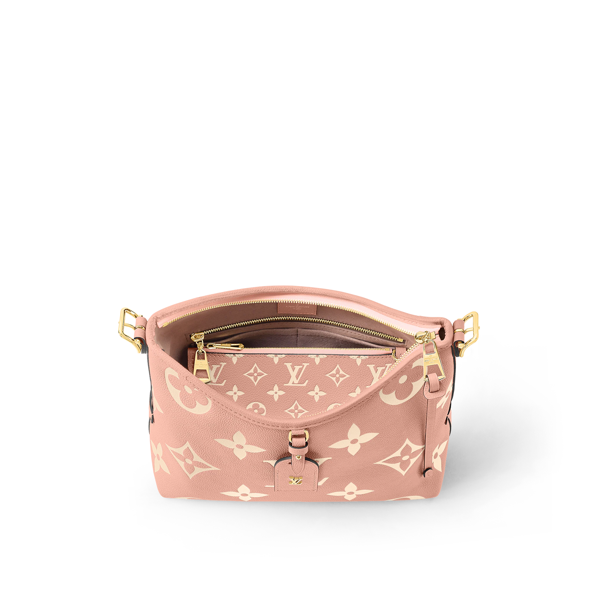 This CarryAll PM bag is fashioned from Monogram Empreinte, the Maison’s supple embossed leather, in a fresh and luminous bicolor edition. The understated design, secure closure and smart interior (which includes a removable zipped pouch) make this casual-chic hobo an ideal choice for daily wear. The bag’s strap can be adjusted for comfortable hand, shoulder or cross-body carry.