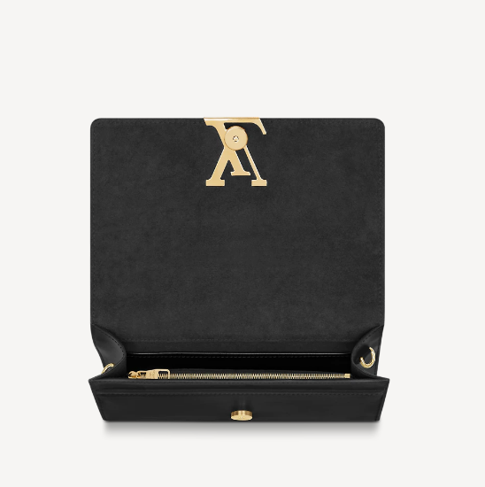 Enhance any day or evening event with the feminine Chain, Louise. It combines sleek. smooth calfskin leather with a beautiful golden chain and opening clasp to make a truly elegant clutch.
