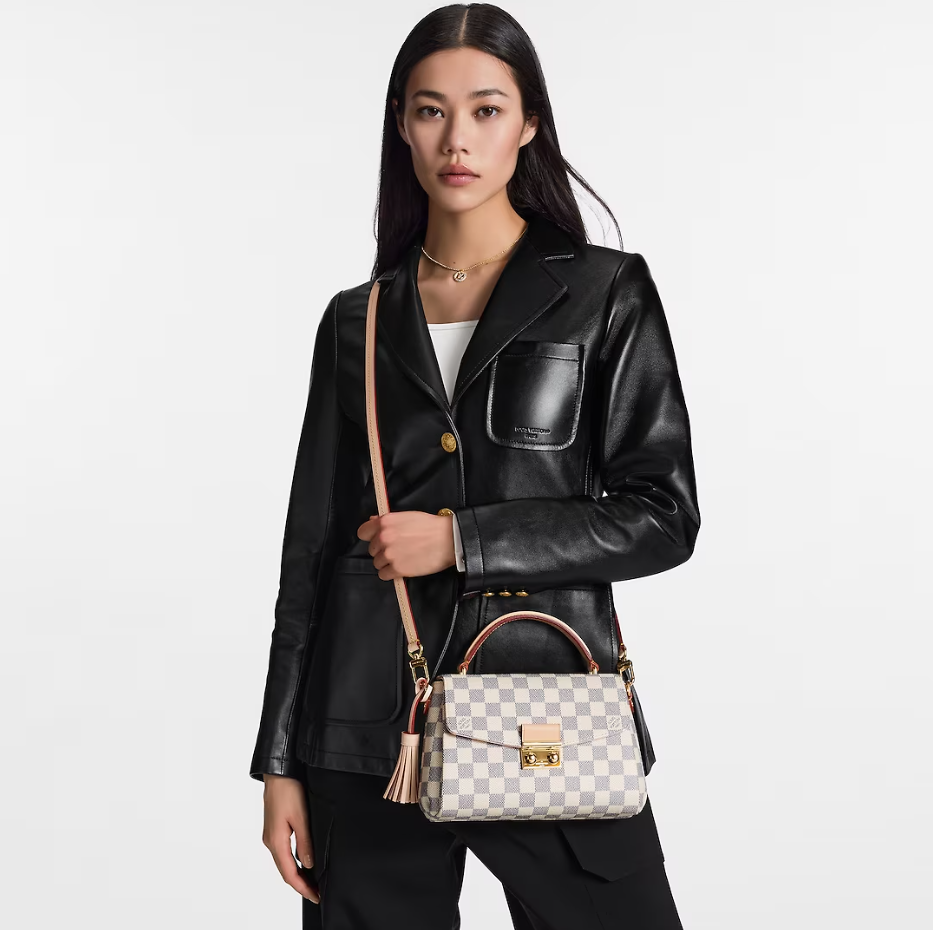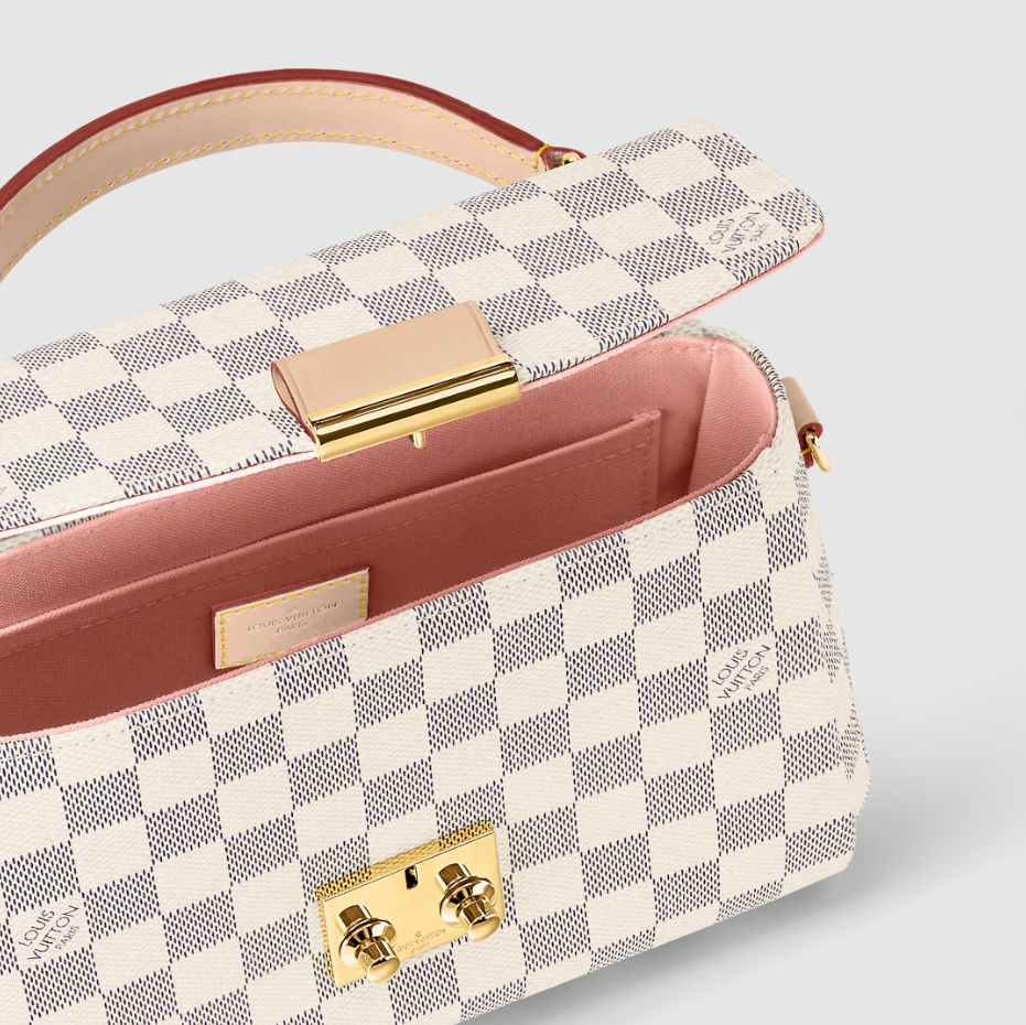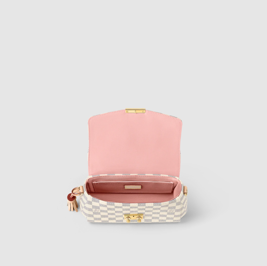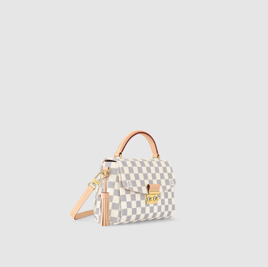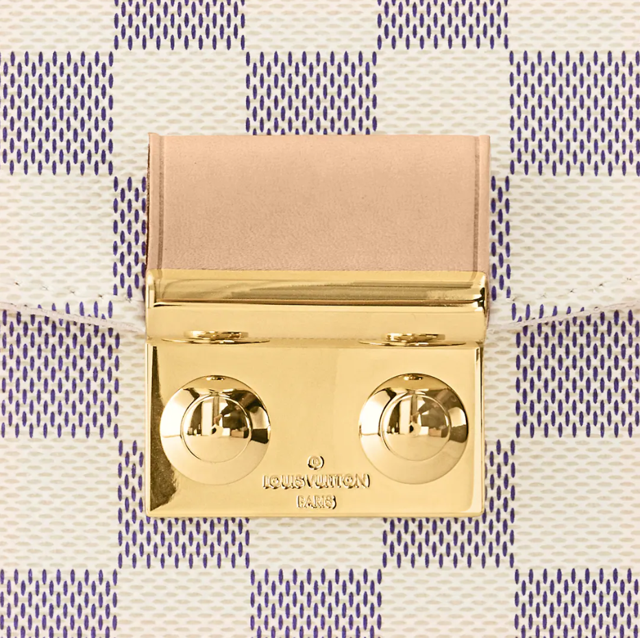 25.0 x 17.0 x 9.0 cm (Length x height x width ) Flat handle shoulder/cross body strap Damier Azur coasted canvas exterior natural cowhide leather trimming textile liningGold colored metallic piecesFlap & clasp closure Removeable tassel in natural cowhide leather interior flat pocket