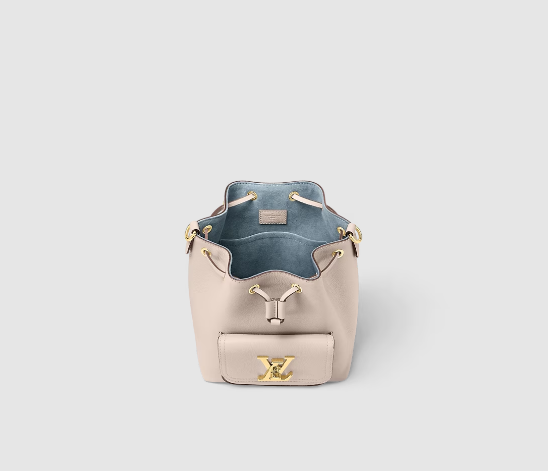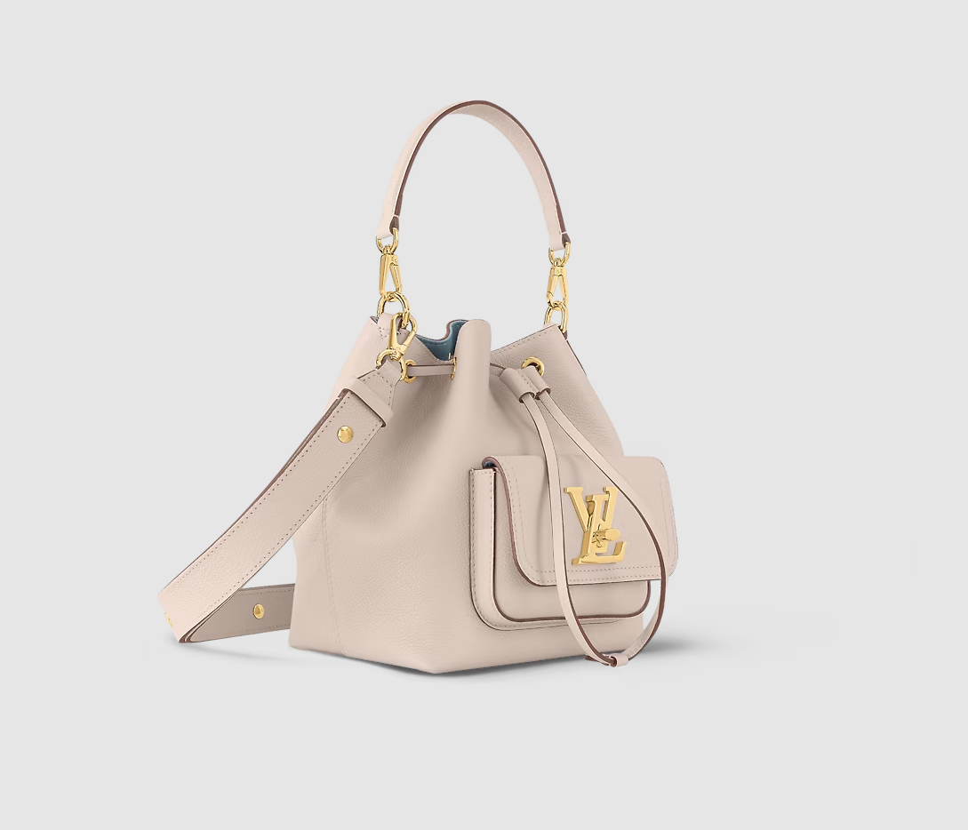 The Lockme Bucket bag in grained calf lather is immediately recognizable by its faceted LV turn lock on the front pocket. This supple bag with curvy proportions is comfortable to carry. The removable and adjustable strap in leather means it can be worn on the shoulder and cross-body, while a removable top handle enables hand and elbow carry.