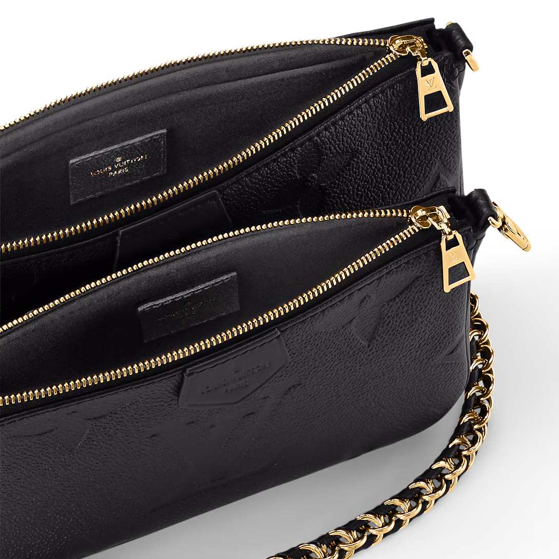 The Multi Pochette Accessoires cross-body bag in Monogram Empreinte leather allies form with function. Every part of this two-in-one bag is removable: the two pouches, the gold chain and the leather strap. The oversized Monogram embossed on the front contrasts perfectly with the classic Monogram pattern on the side gussets.