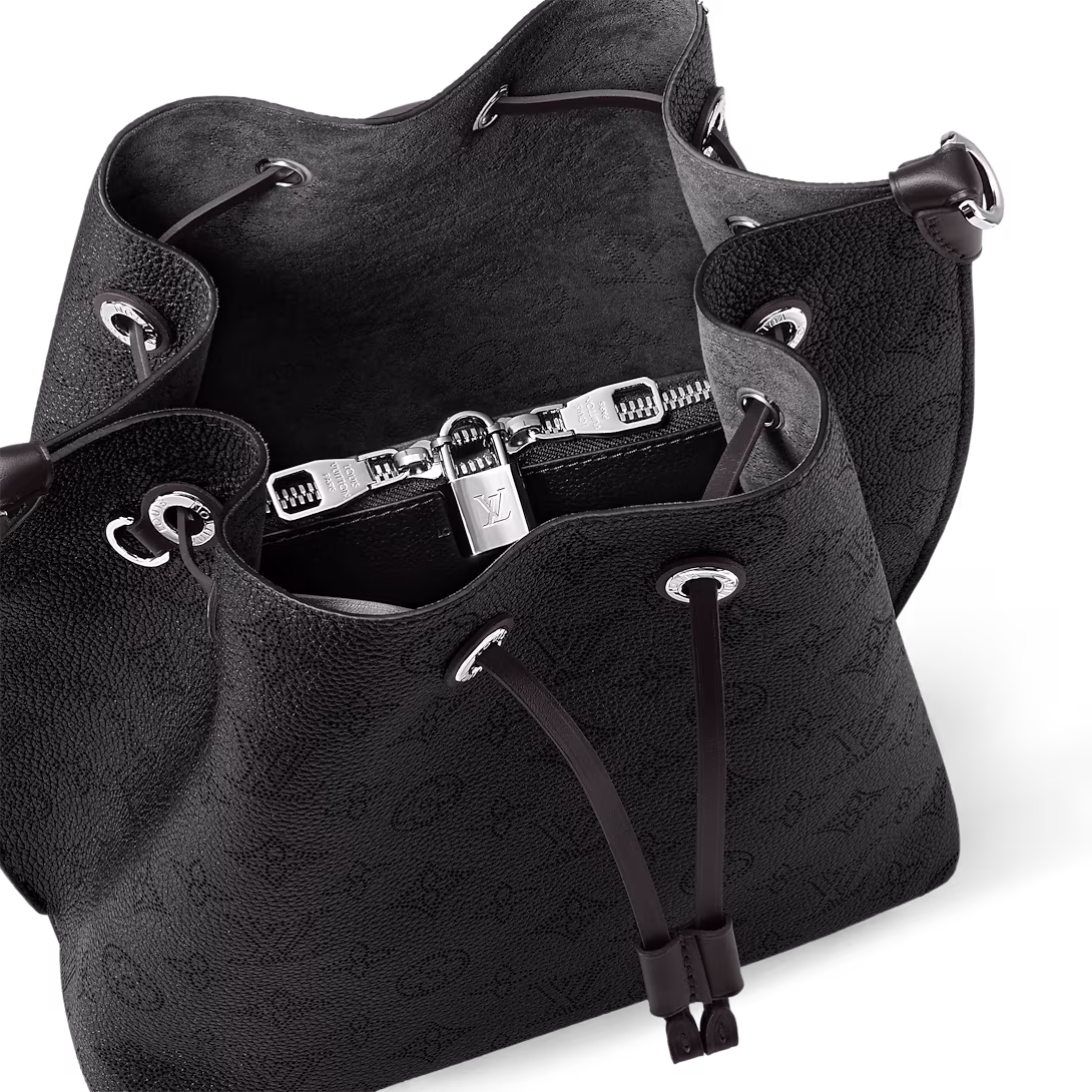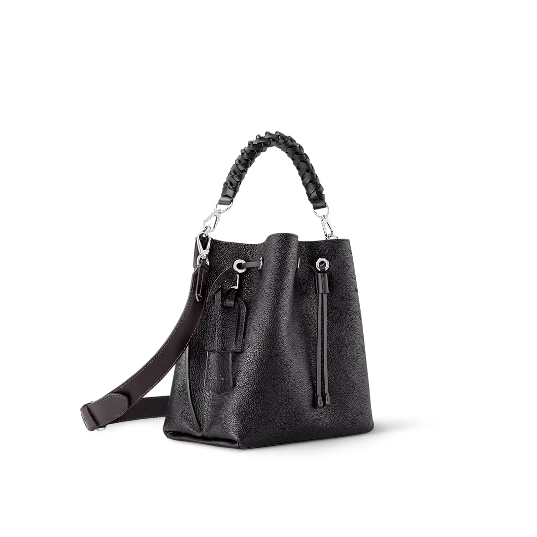The Muria bucket bag is made from Mahina calf. a perforated leather with a discreet Monogram motif. Supple and sophisticated. it is a pleasure to carry. either by the braided top handle or the long leather strap. which adjusts for short- and long-shoulder or hands-free cross-body wear. Crafted signature details include a name tag and keybell in smooth calfskin.