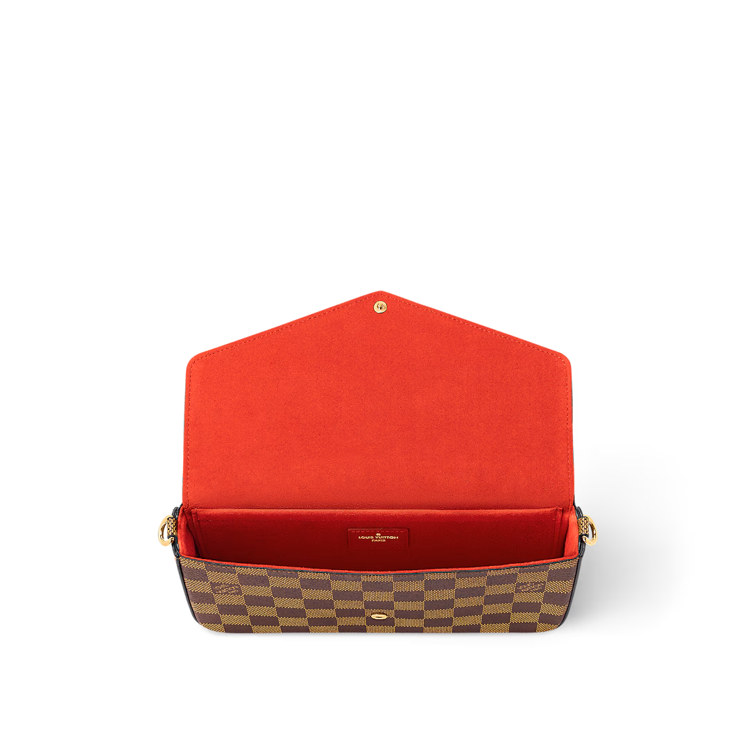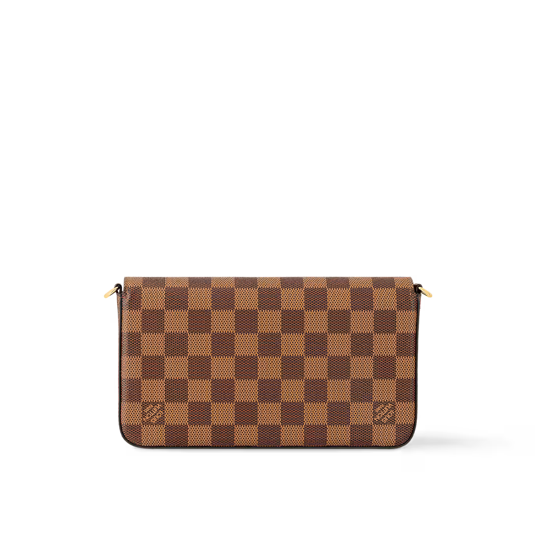 With its two removable interior pockets. the elegant Pochette Felicie in historic Damier canvas is the stylish solution to carry and organize your daily essentials. Much more than a wallet. it can be transformed into a glamorous shoulder bag or clutch thanks to its removable golden chain.