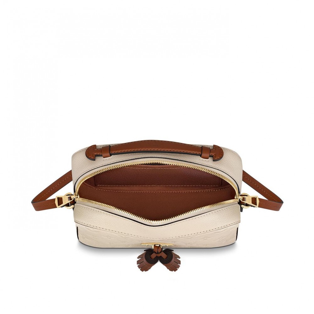 Fashioned from embossed Monogram Empreinte leather. this edition of the Saintonge handbag is detailed with playful tassels and shiny golden hardware. Sized to fit a woman’s daily essentials. this compact model transitions easily from day to evening. either carried by the supple top handle or suspended from the adjustable shoulder strap.