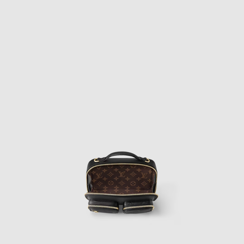 The sporty Utility Crossbody bag is made from Calfskin leather with a top handle and zip pulls in the same leather. A very functional bag, it has multiple outside zipped pockets for quick access to belongings. Its compact shape makes it lightweight while the wide adjustable strap means it’s comfortable to carry.