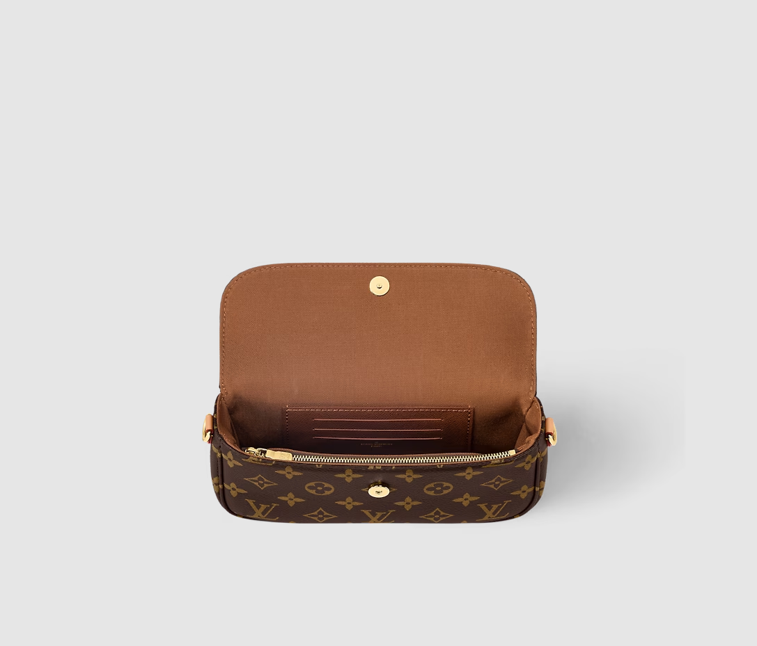 Inspired by the Sac Recoleta handbag from the 2000’s, the on-trend Wallet On Chain Ivy bag is fashioned from Monogram canvas. The removable gold-color chain allows short-shoulder carry while the adjustable and detachable strap, in natural leather, enables cross-body and long-shoulder carry. Three card slots and a zipped inside pocket make it perfect for everyday essentials.