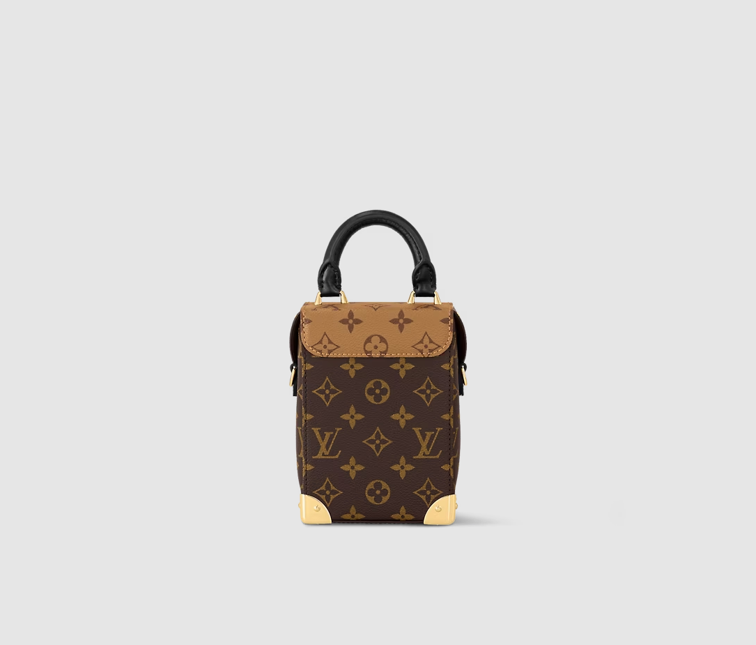 The Camera Box handbag combines all the Petite Malle’s signature details – S-lock, metallic corners, rivets, and a mix of Monogram and Monogram Reverse are all here – but on a modern shape. A thin gold-color chain brings a feminine touch to the bag while the pivoting top-handle adds a comfortable carry option.