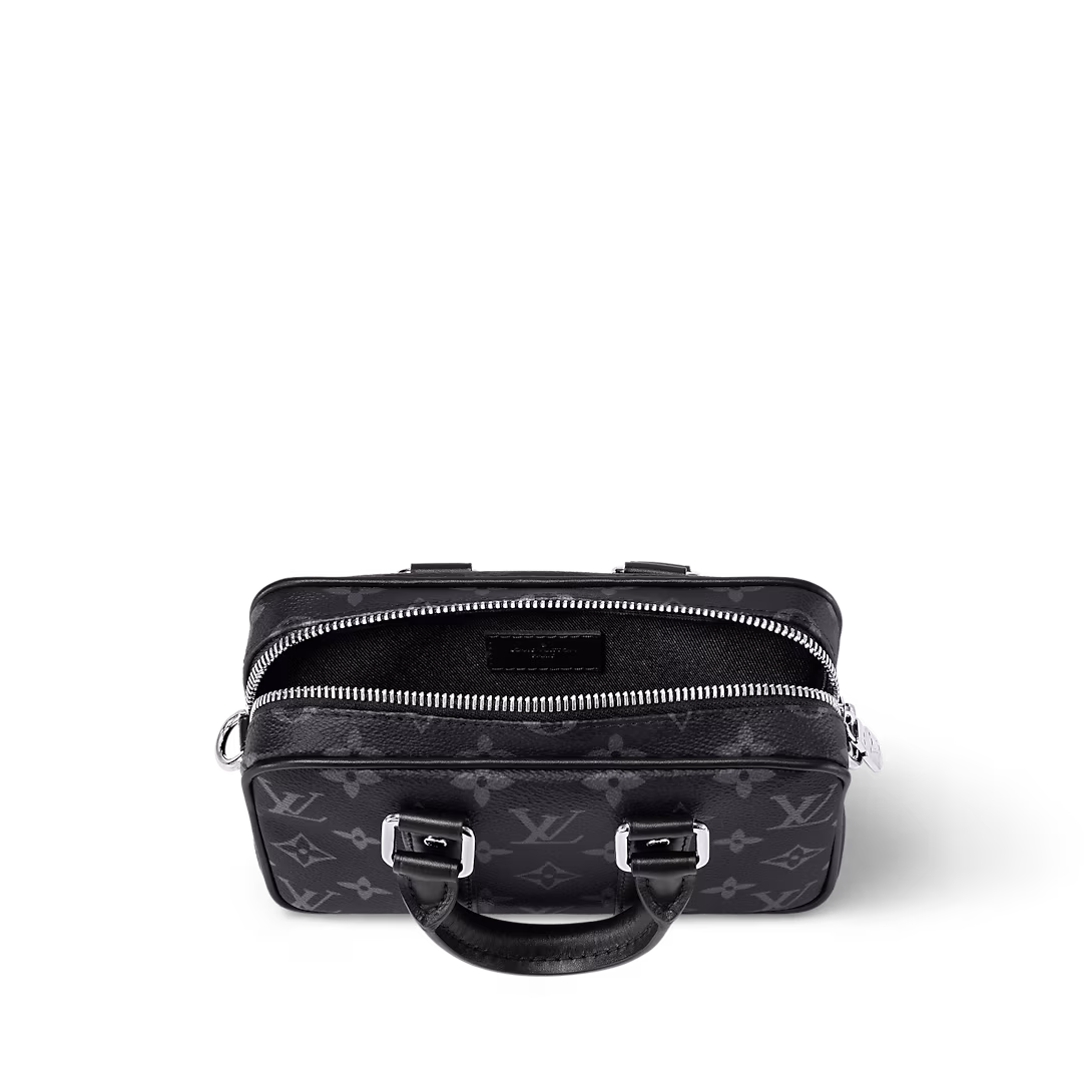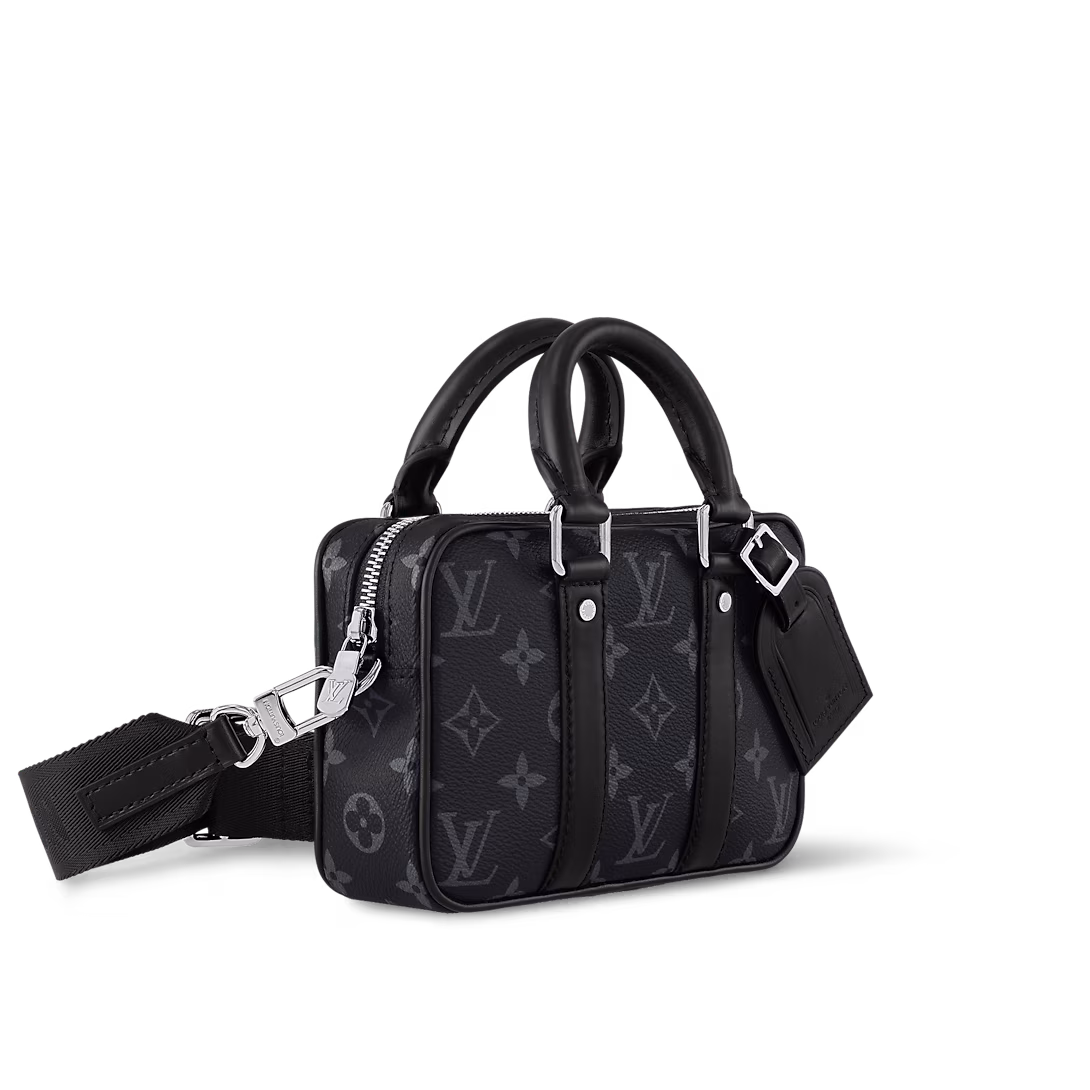 The Nano Porte Documents Voyage bag brings attitude to the business world. It features all the details of the traditionally sized original: zip closure, double handle and the removable and adjustable strap that enables convenient shoulder and cross-body carry. The main compartment is big enough for a phone and wallet.