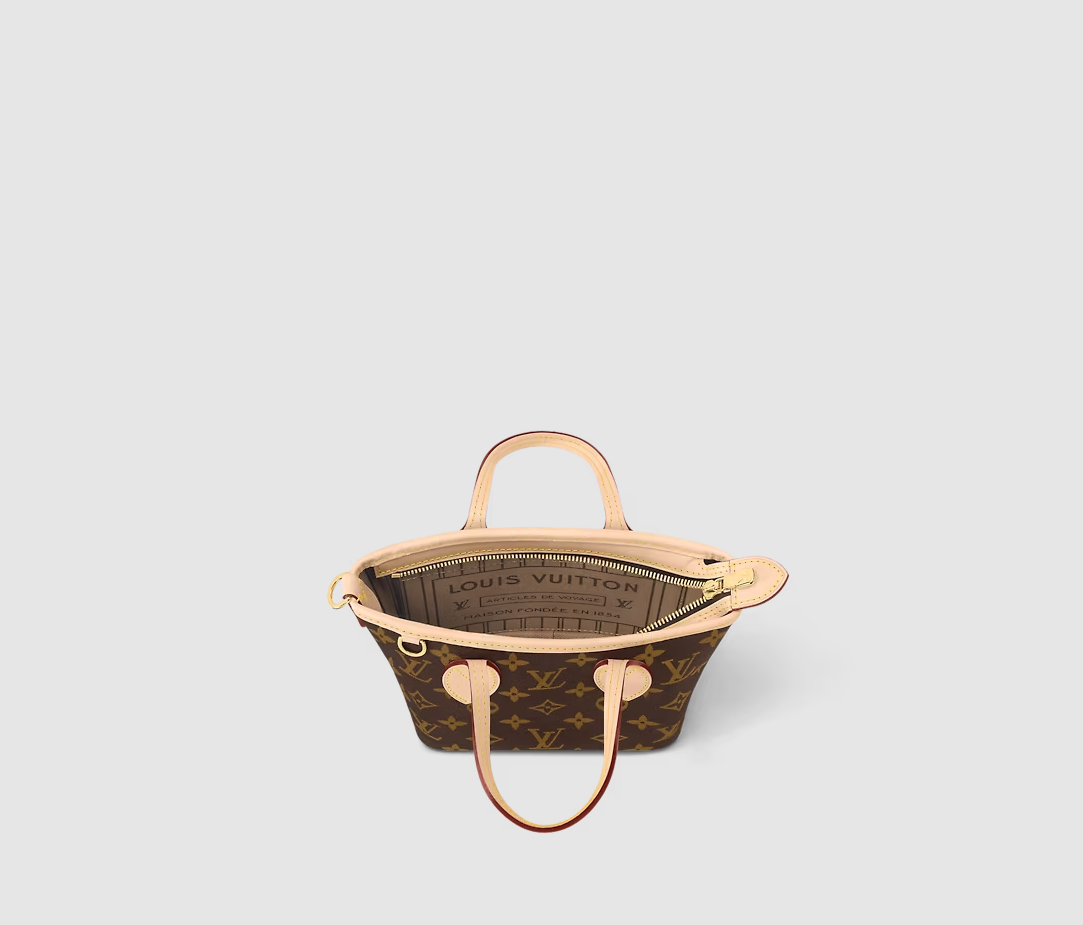 This season the House’s forever favorite, the Neverfull, gets reinvented as a mini-tote: the Neverfull BB handbag. This scaled-down version features an adjustable and detachable textile strap as well as a playful coin purse attached to a D-ring. It is just the right size for small essentials like a smartphone and compact wallet.