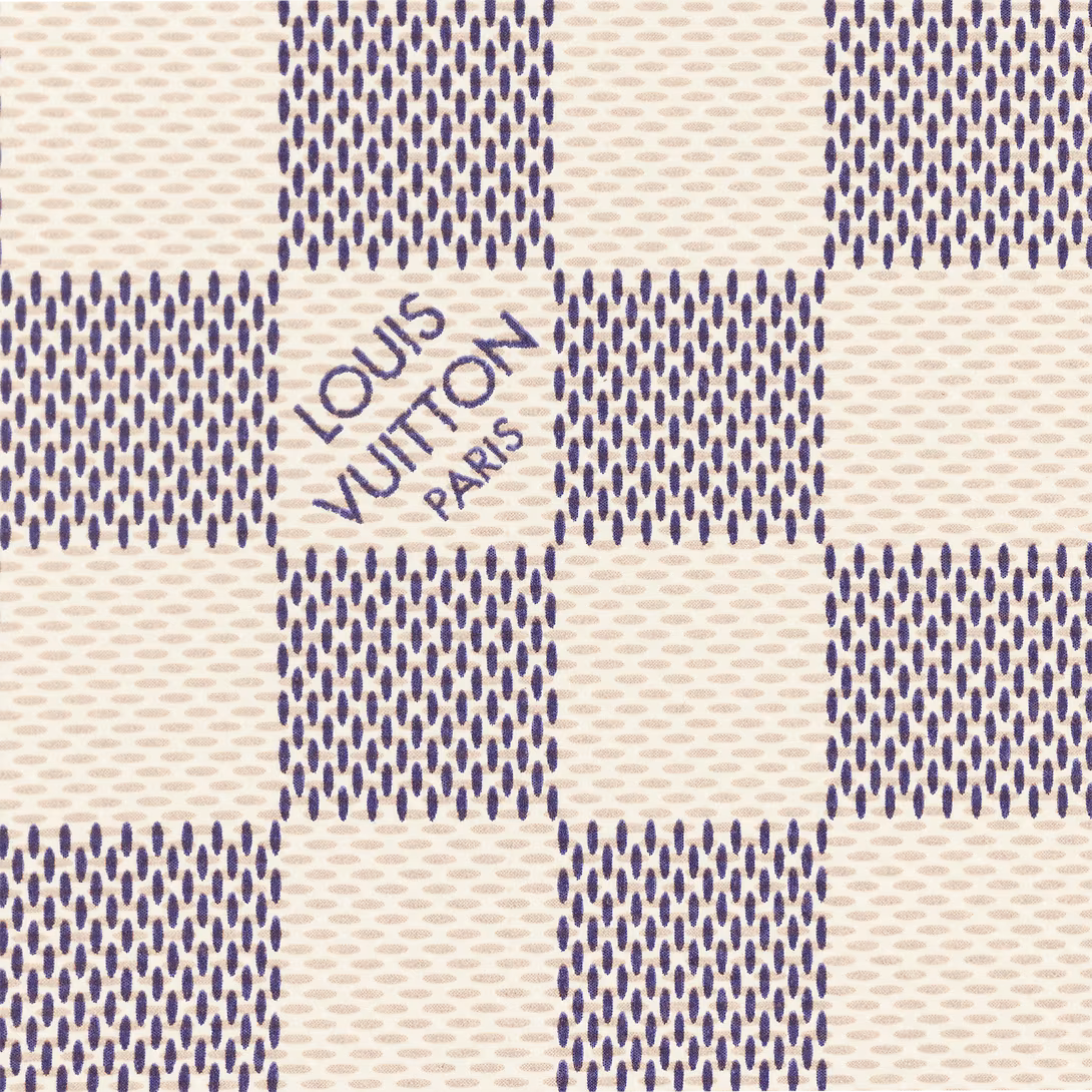 The Neverfull MM tote unites timeless design with heritage details. Made from fresh Damier Azur canvas with natural cowhide trim, it is roomy yet not bulky, with side laces that cinch for a sleek allure or loosen for a casual look. The slim leather handles slip easily over the shoulder or arm. Lined in colorful textile, it features a removable pouch which can be used as a clutch or an extra pocket.