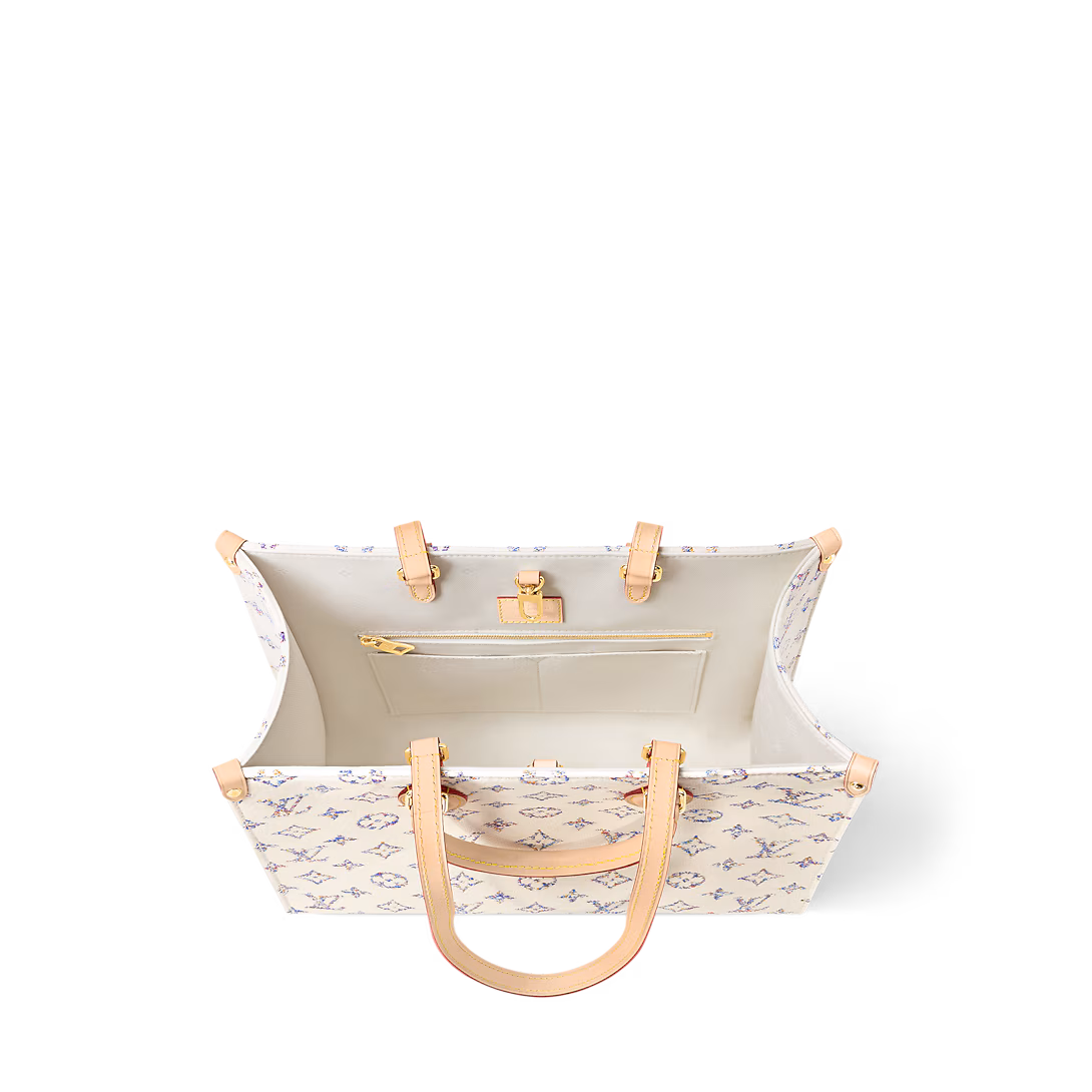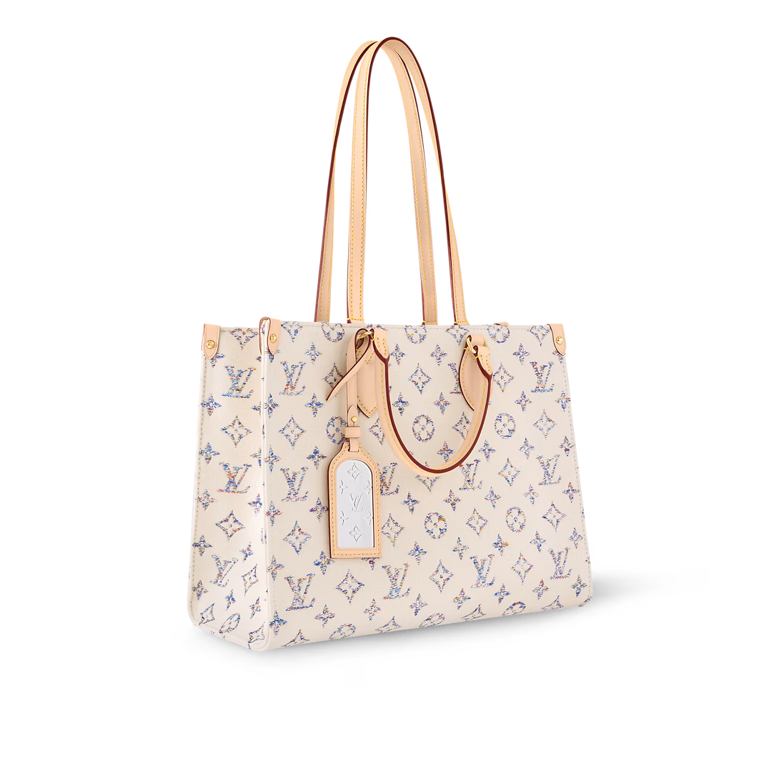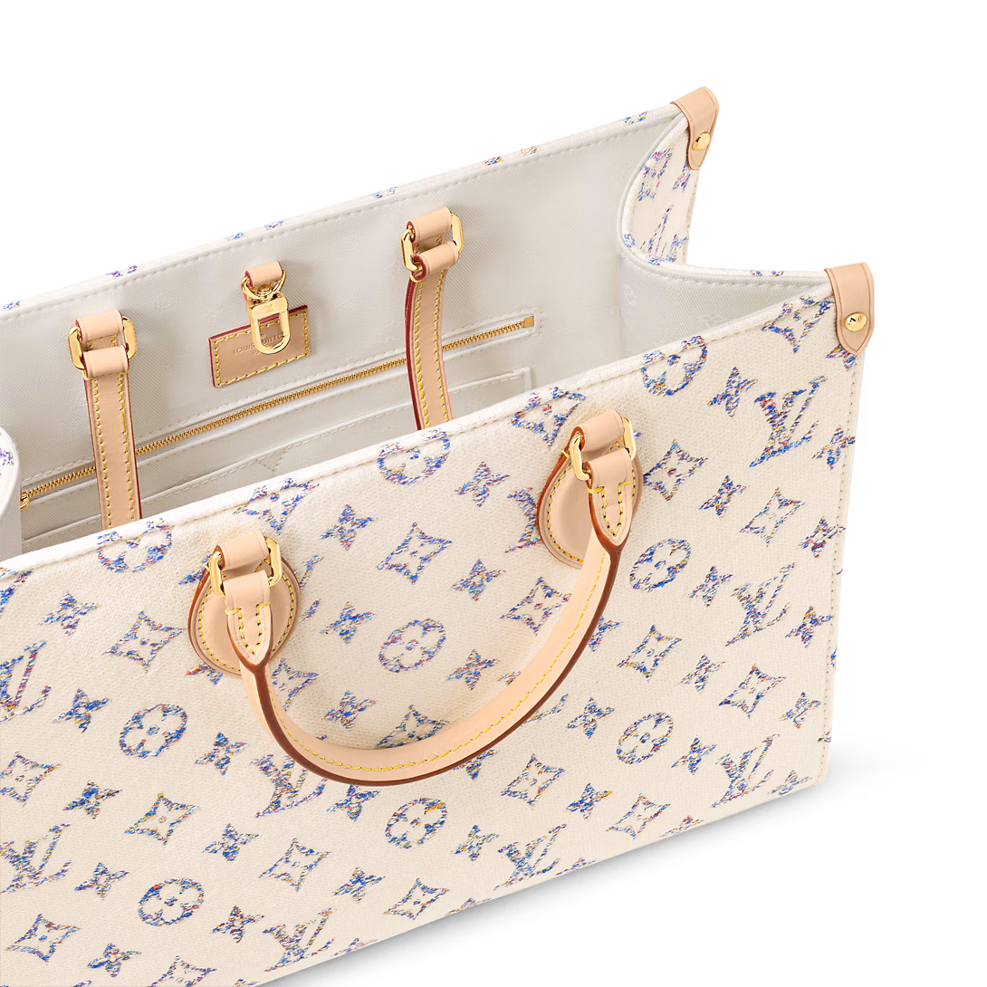 Part of the Nautical capsule, this OnTheGo MM is made from Monogram jacquard fabric, created with 66 different colored threads for a Monogram with a soft gradient of color. To ensure durability, the fabric is treated with an invisible protective coating. Each model comes with a laser-engraved mirror charm for on-the-go touch-ups.