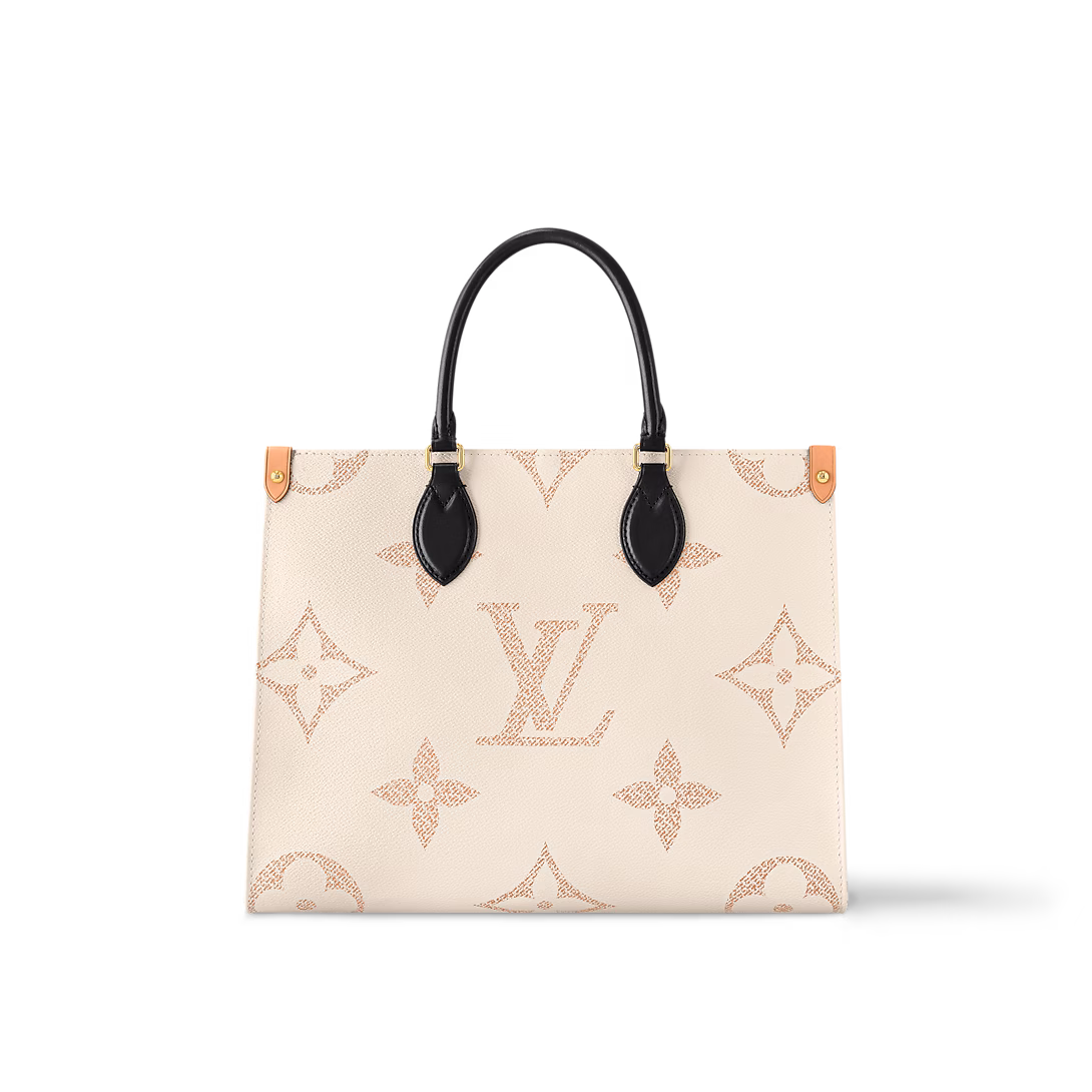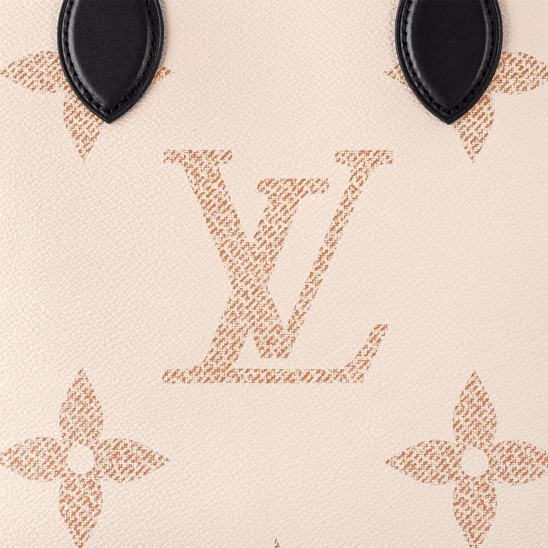 From the Cruise 24 collection comes this OnTheGo MM, a capacious tote crafted from new Monogram Dune canvas. The sand-inspired colorway gives a modern, effortless air to this versatile OnTheGo, which features two top handles in contrasting black leather and twin shoulder straps made from the Maison’s heritage natural cowhide. Golden hardware adds a gleaming flourish to the piece.