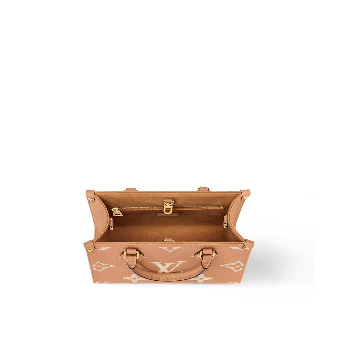 This versatile OnTheGo PM tote showcases the House’s signature embossed leather, patterned with the iconic Monogram motif in a contrasting colorway. A polished choice for everyday use, it is finished with refined gold-tone hardware. The articulated top handles and adjustable strap offer multiple carry options.