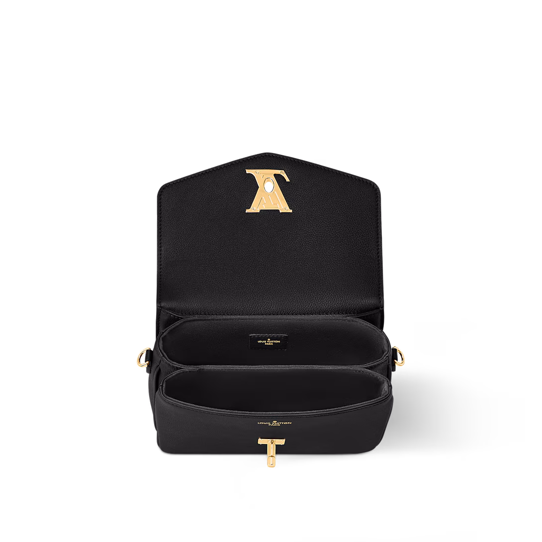The sleek Oxford handbag in supple grained leather makes an ideal companion for daily life. With its sporty-chic attitude, this versatile model moves effortlessly from day to evening, with a detachable gold-finish chain for shoulder wear and an adjustable, removable leather strap for a hands-free, cross-body carry. The Lockme closure crafted from gleaming, gold-finish metal adds a stylish signature touch.